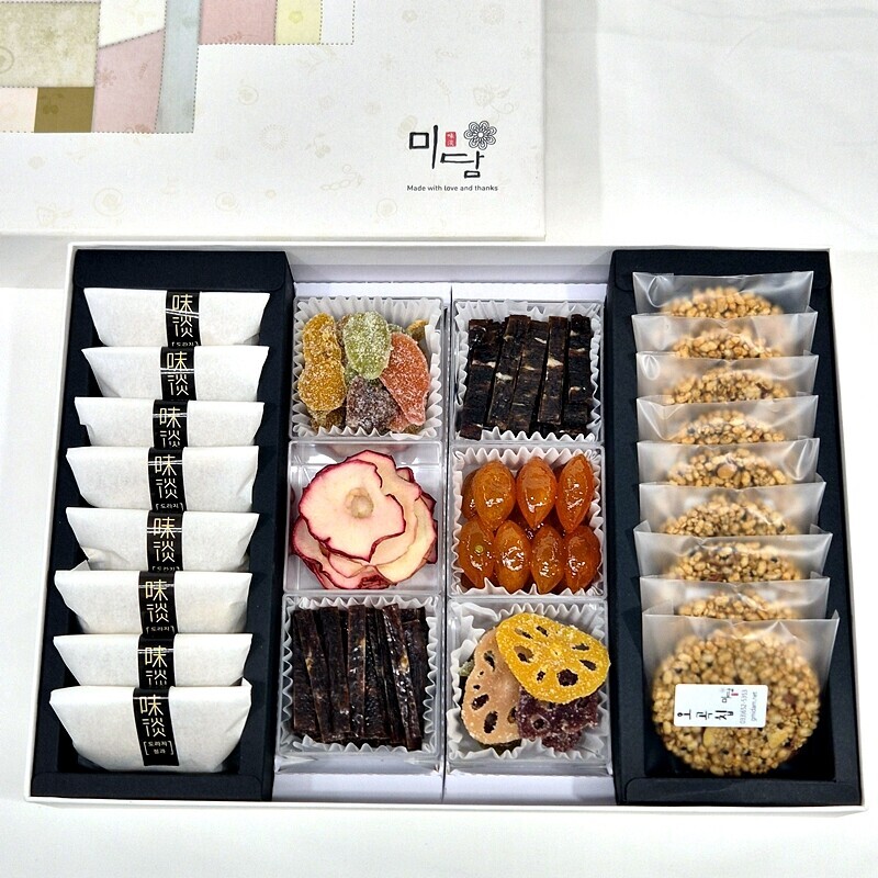 국민안주 육포 도라지정과 오곡칩 도라지청 편강(생강정과)를 골고루 담았습니다. 부모님