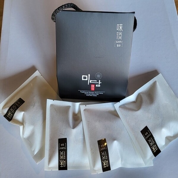 도라지를 조청등에넣어 오랜시간조리고 말려서 만드는 전통 정과입니다. 콩고물을 묻혀 고소한맛을 더했습니다.